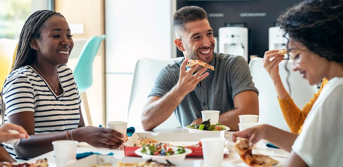 There are a few ways to provide food, whether you're offering a daily meal or a monthly employee-appreciation lunch. Traditional catering is an efficient option for larger companies. If your employees have a variety of preferences or dietary restrictions, it may be more efficient to order individual meals; the same goes for teams that include remote workers.