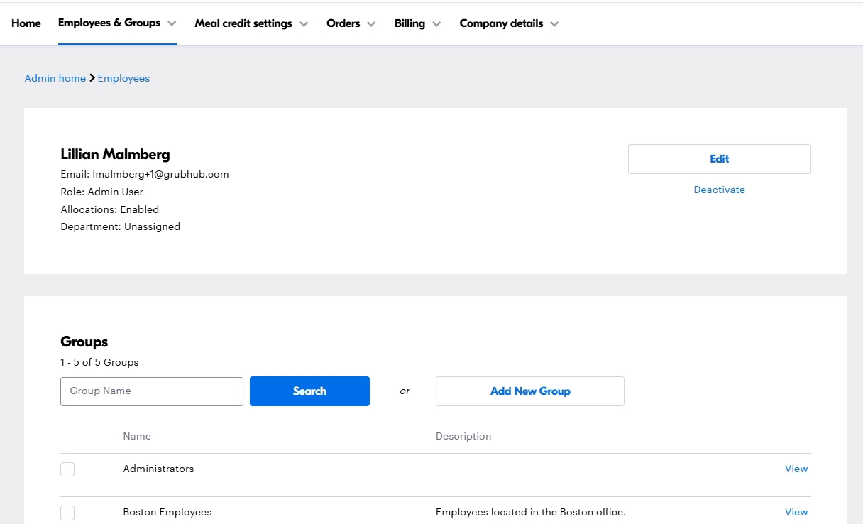 What if a user has already registered their work email with an existing Grubhub personal account?