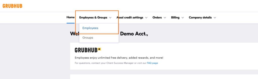 1. Navigate to the your Admin Portal via the "Business Account" icon in the drop-down menu on your Grubhub.com homepage.