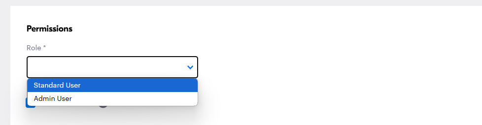 4. You will also need to indicate if the user should be designated as a Standard User or an Admin User.