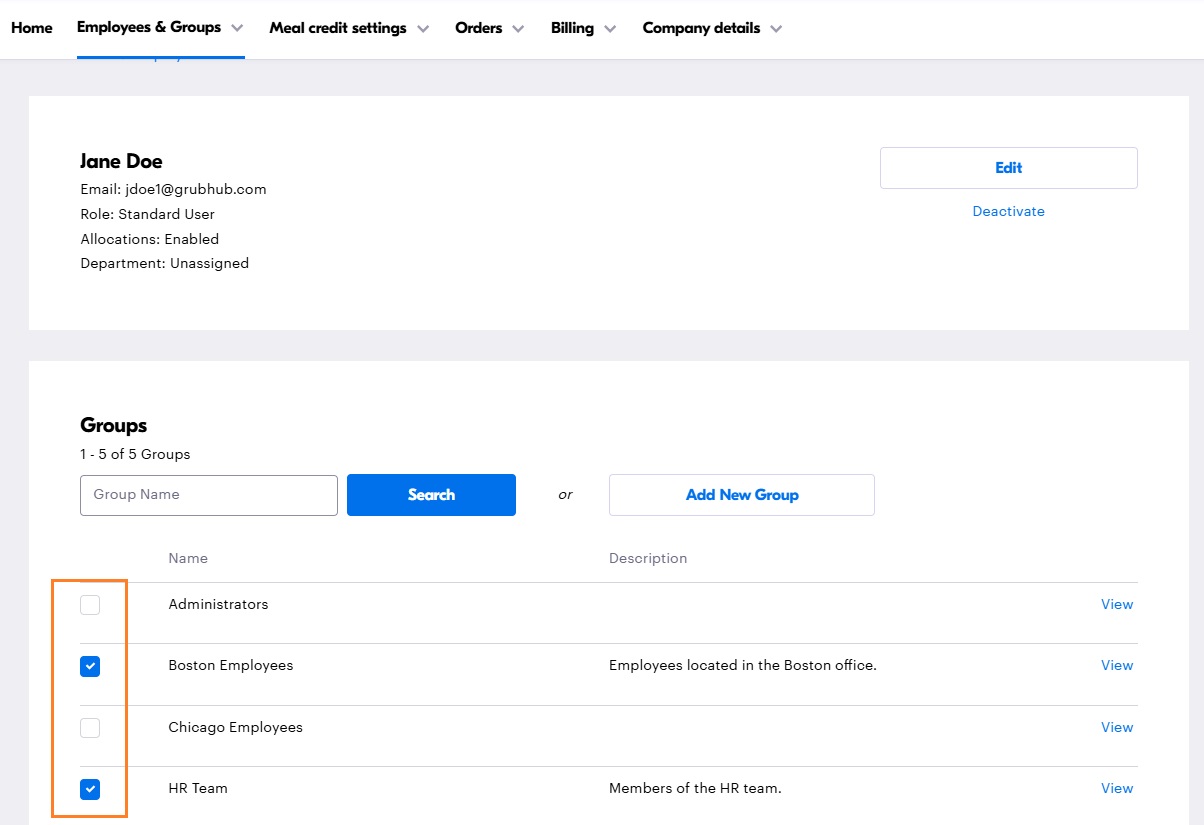 6. After clicking "Add New Employee, the page will reload, and you will then be able to add the employee to any existing Groups so they can be easily assigned to a line of credit in the future.