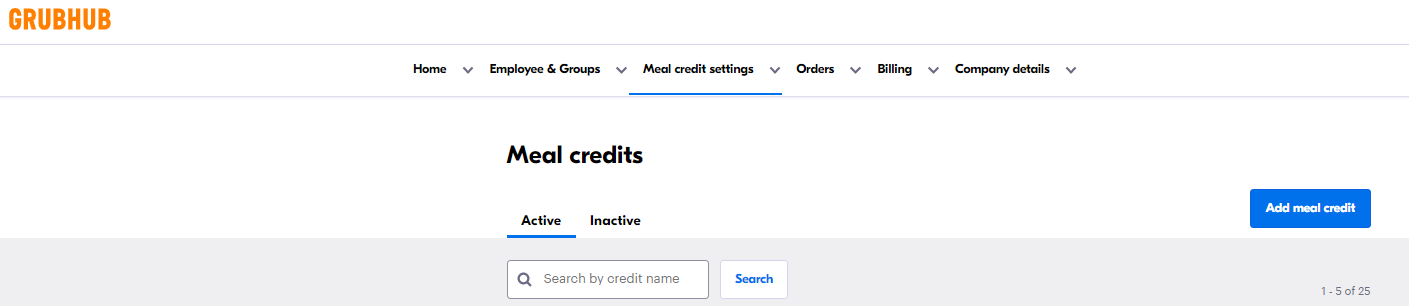 - Log into your Business Account. Go to Meal credit settings and select Meal credits.