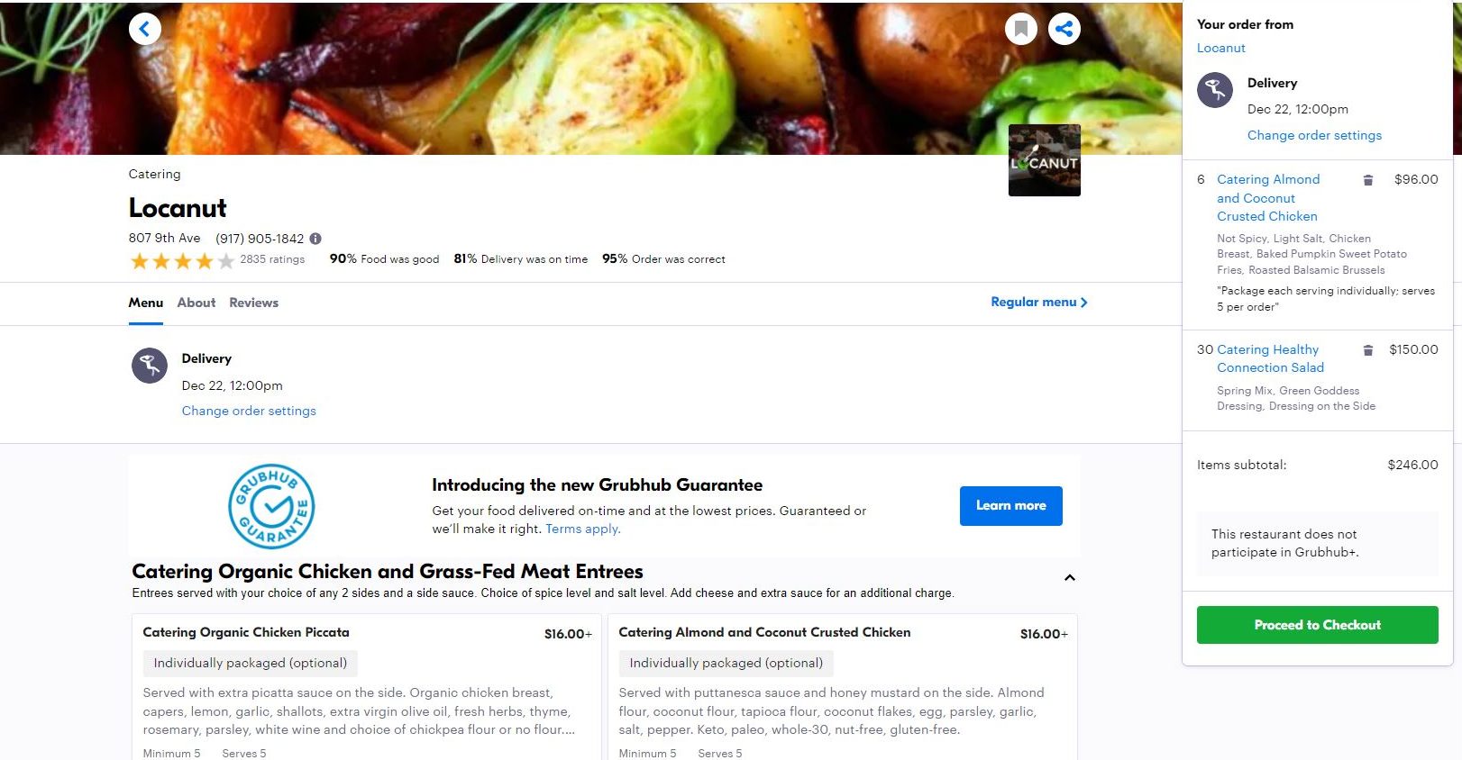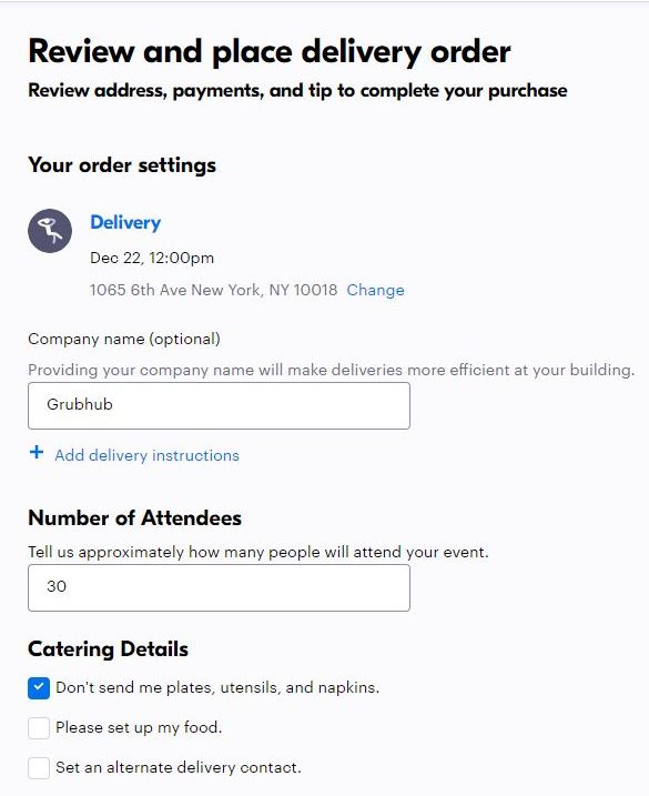 • Currently, catering cannot be ordered using the Grubhub app.
