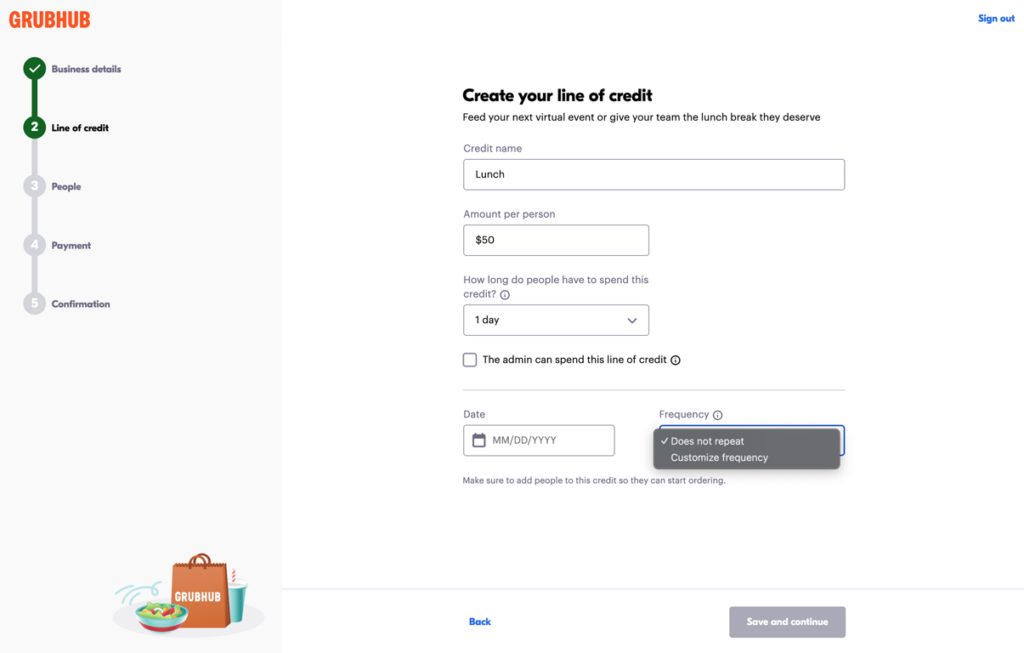 In step 2 of the signup flow, set up your line of credit.